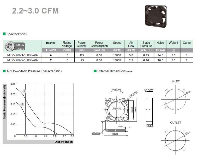 Sunon累積數十年來持續不懈專注於馬達核心技術與微型風扇的發明創新,提供17mm~120mm全系列DC Fan & Blower,創造最具效益的散熱解決方案。本系列產品符合RoHS規範,並通過各項品質管理系統認證,亦取得ULTUVVDE…等多項驗證。