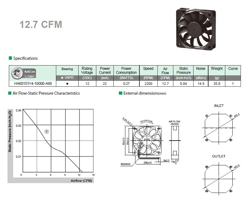Sunon以對細節的挑剔和對聲音品質的堅持,開發『極.靜音風扇』系列,並結合微型馬達技術,創造扇葉與流道的最大空間。『極‧靜音風扇』之低伏啟動電壓特性,讓風扇在低轉速狀態下,展現運作寧靜與優越的解熱效能,可廣泛應用於醫療設備、家電設備、廚房設備、商業設備等領域。軸承: VAPO電壓: 12V型號: HA60151V4-10000-A99