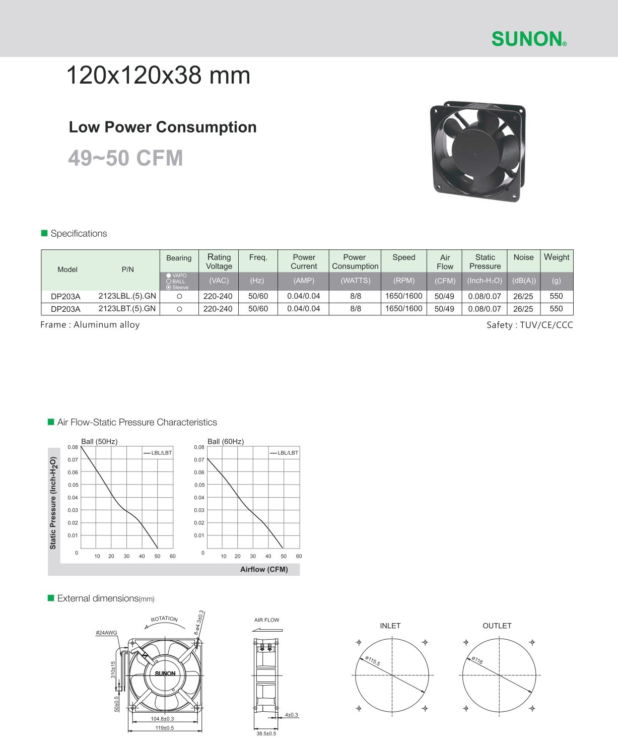 120x120x38 mm (Low Power Consumption)